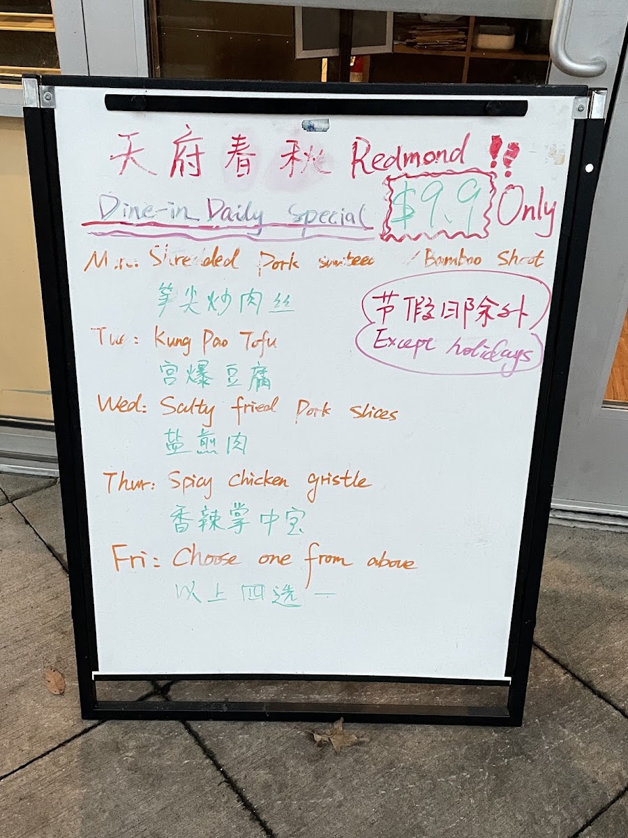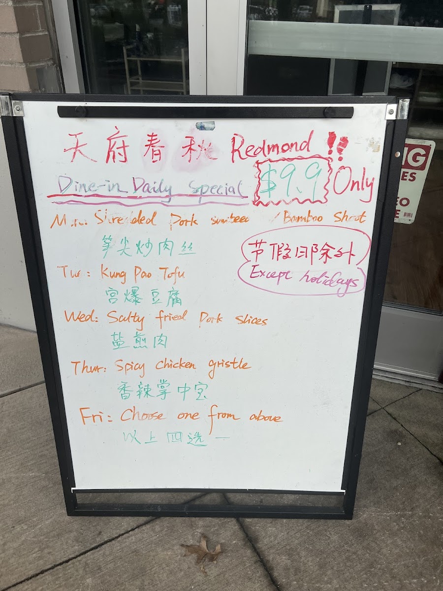 Tian Fu Redmond Menu